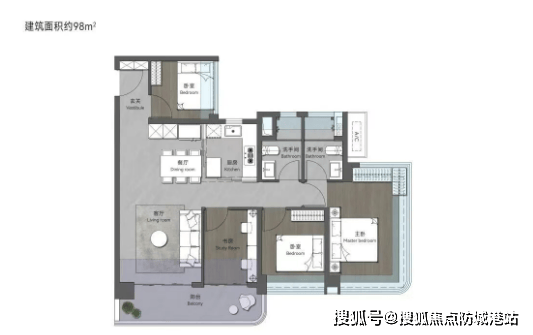 #### 户型一:98㎡创意四房两卫(刚需首选,紧凑实用)