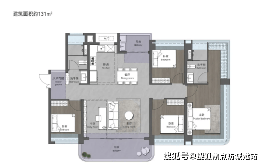 #### 户型五:131㎡创意四房两厅(环幕视野,高端宜居)