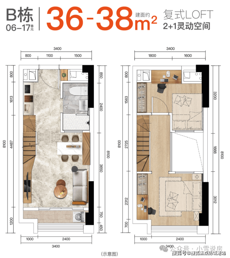 30-31㎡的双钥匙户型,分租给两个租客的话,月租金在4800-5500元之间。相比单层出租,租金收益几乎翻倍,投资回报率更高。
