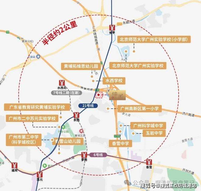 从城市动线维度来看,项目周边已形成“地铁+城轨+高速”的多维交通体系。约1公里范围内覆盖地铁21号线及规划中的7号线,同时有轨电车1号线串联区域内部交通,高速路网实现对天河、增城、番禺及佛山方向的快速通达。对高频通勤人群而言,这种立体化交通结构不仅提升出行效率,也增强了生活半径的延展性。