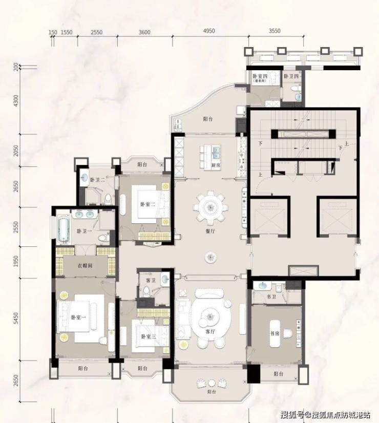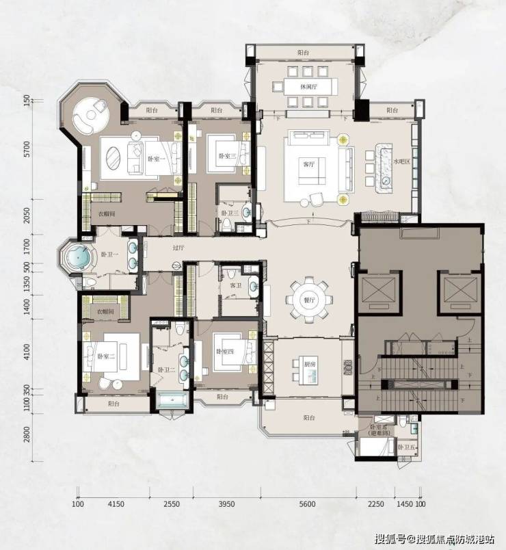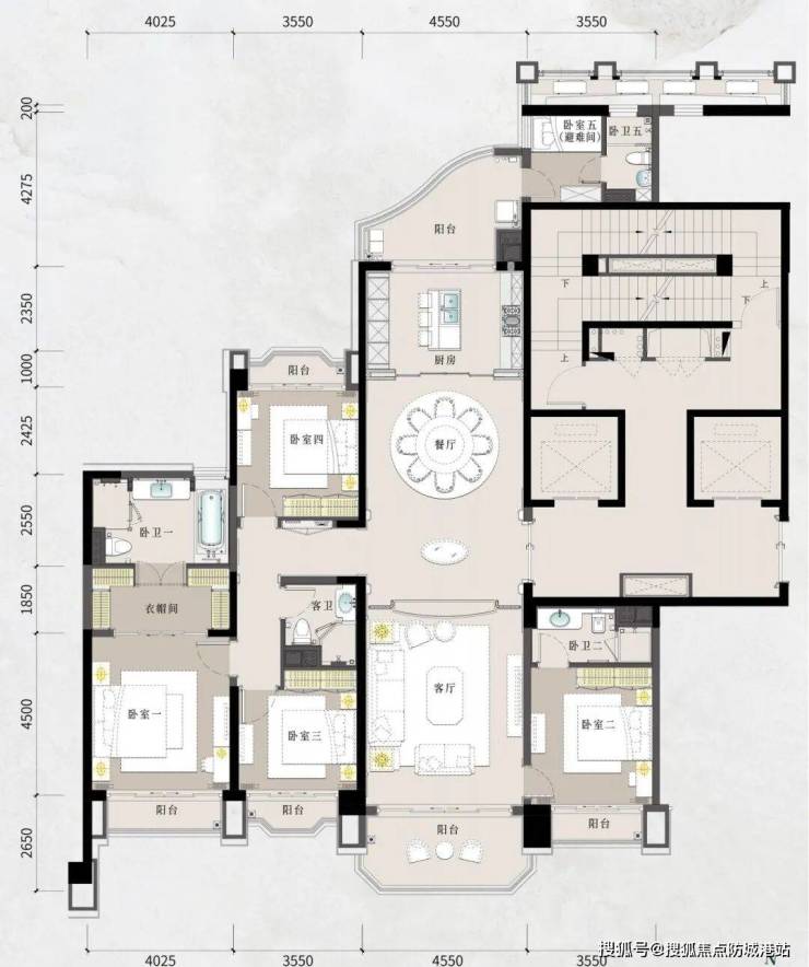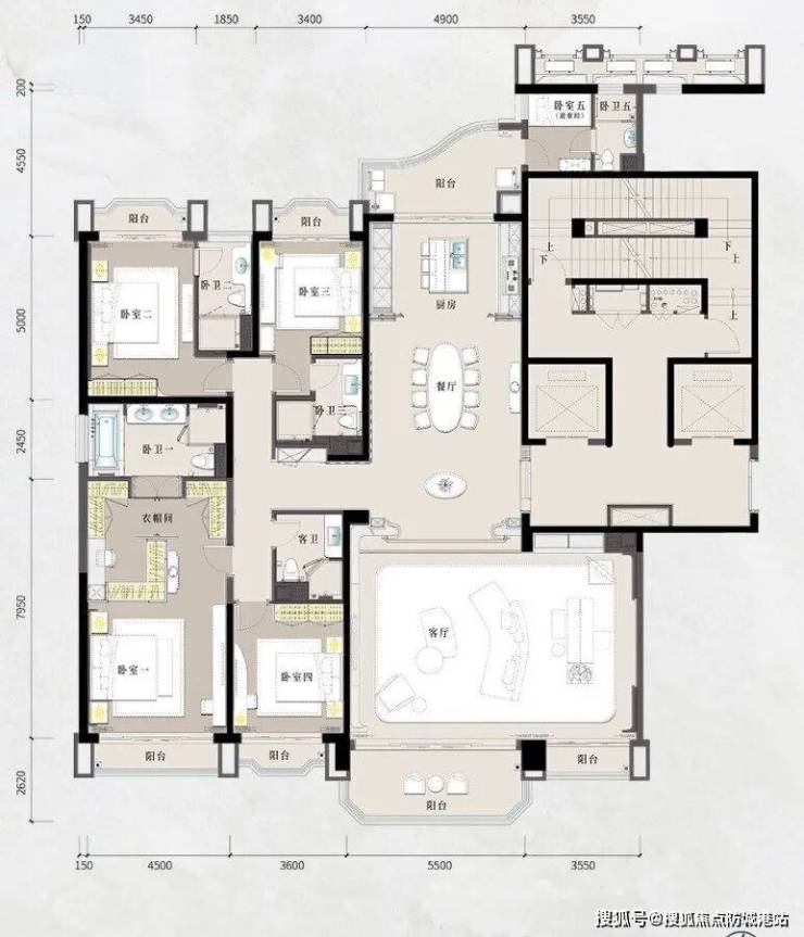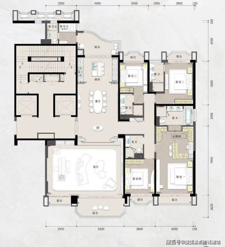 星河湾·半岛五號的户型设计堪称匠心之作,覆盖236~398㎡的湾芯江岛大平层,以及1200~1600㎡的空中复式和千平尊邸。项目整体以十字中轴布局为基础,确保户户南北通透,充分利用自然光线与通风条件,为居住者提供舒适且健康的居住体验。大平层户型功能分区明确,卧室、客厅、餐厅布局合理,兼顾日常居住与社交娱乐需求。