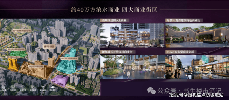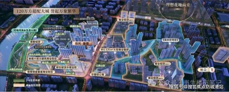 自带约40万方滨水商业集群: 作为约120万方大城的一部分,保利瑧誉周边规划了新加坡式开放园林商业街、古建筑特色风貌街区等,目前鸭嘴兽健身、德柏威士忌餐酒吧等超百家品牌已签约,打造步行可达的“烟火气”与“时尚感”并存的社区商业。
