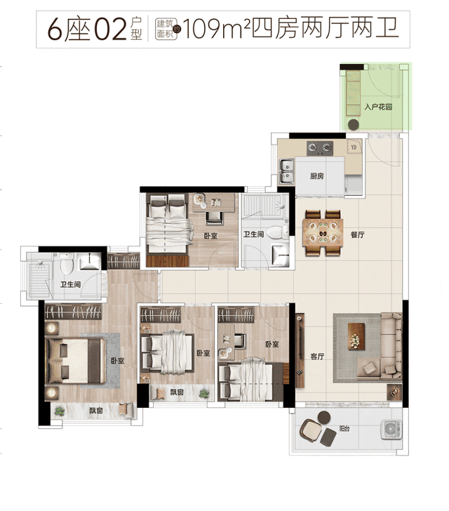 5、【109㎡户型:多开间朝南的阳光生活】