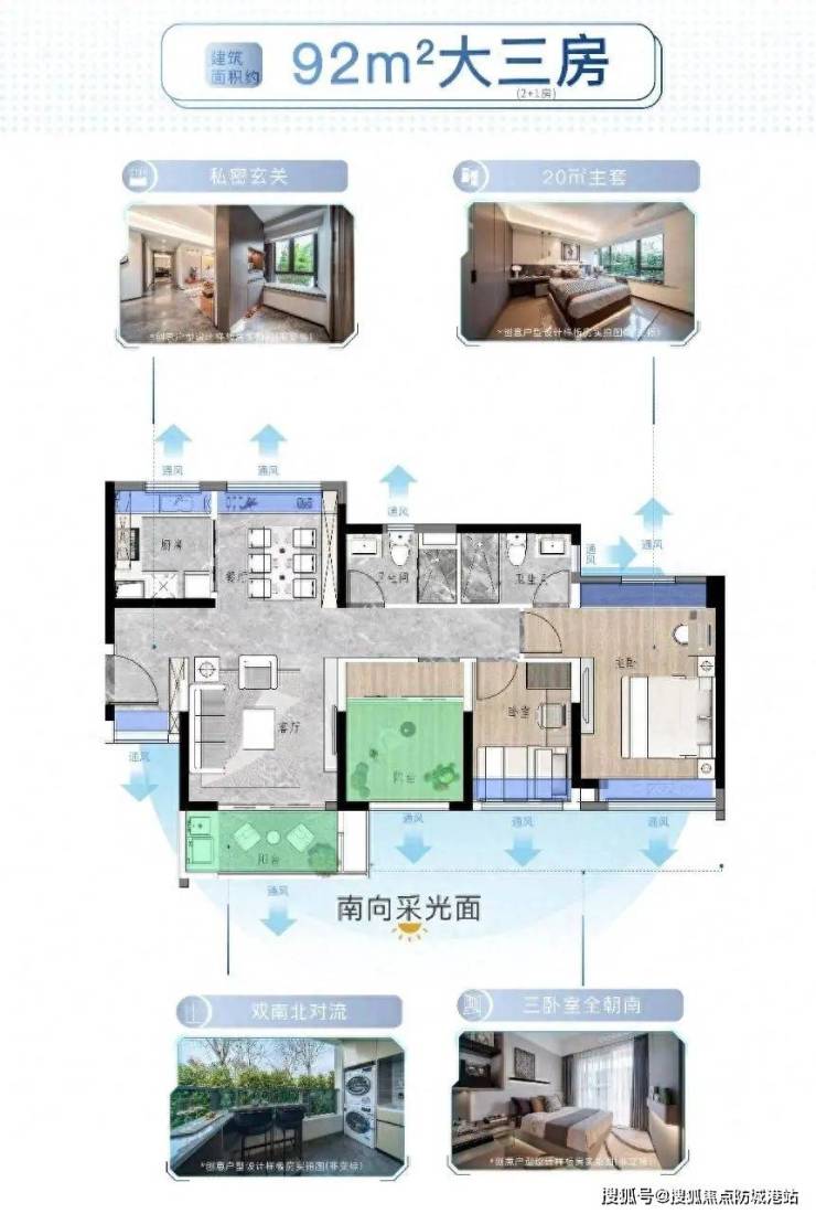 - **户型产品**:主打89 - 115㎡户户南向三至四房户型,充分考虑到不同家庭结构的需求。例如南区9#性价比园景楼王推出的户型,2梯5户,26层,采用越秀风车型设计。建面约92㎡大三房(2 + 1)户型,南北通透,东南向单边位,采光通风极佳;建面约114㎡大四房(3 + 1)户型,经典竖厅设计,配备约6.5m长大阳台,空间开阔,实用性强,为居民提供舒适的居住体验。