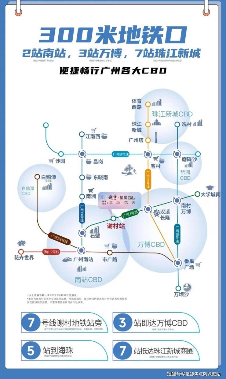 4. **交通枢纽——畅达全城的便捷出行**:项目在交通方面具有显著优势。位于地铁7号线谢村站旁,2站可达广州南站,3站至万博,7站就能抵达珠江新城。一条7号线可换乘2/22/3/18/4号线,极大地拓展了居民的出行范围,无论是前往广州各大商务区、商业区还是其他区域,都极为便捷。同时,一线黄金汉溪大道直连华快、新光、东新三大南北向主干道,进一步完善了交通网络,使生活圈基本覆盖全城CBD。这种便捷的交通条件,让居民能够轻松实现工作与生活的快速切换,无论是通勤、商务出行还是休闲旅游,都能享受到高效、便捷的出行体验,真正做到畅达全城,出行无忧。