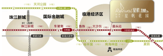 项目紧邻地铁5号线东延线庙头站,并且距离地铁13号线南海神庙站仅700米,通过地铁网络可以轻松到达广州主城区各个地方。此外,项目周边有多条公交线路经过,自驾出行也非常方便,一条黄埔大道贯穿第二CBD经济核心地带,串联各大主城区。