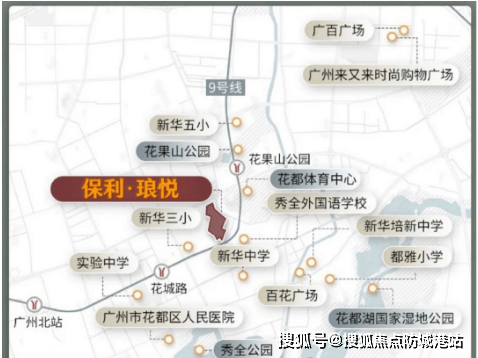 保利琅悦位于花都区云山大道与体育路交界处,属于区府板块中的旧区,这里是花都最早发展的区域之一,拥有丰富的市政配套资源。距离最近的9号线花果山公园站仅500米,步行即可到达,而花城路站也仅有900米的距离,形成了便捷的双地铁出行网络。此外,自驾出行同样方便,周边有多条主要干道如云山大道、花城路等,以及许广高速等高速公路,便于快速连接广州市区及其他城市。