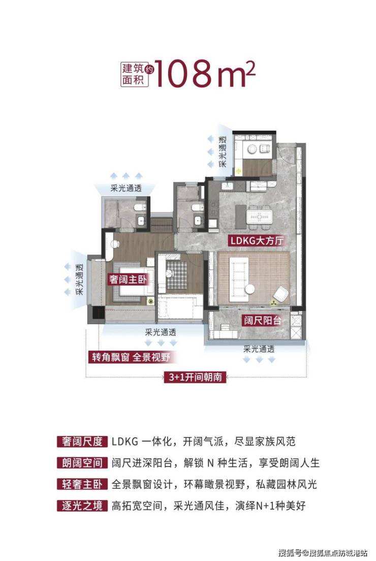 主力户型建面约108㎡产品采用LDKG一体化+双阳台设计
