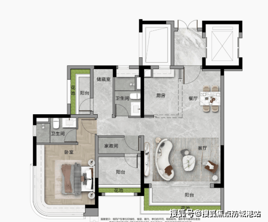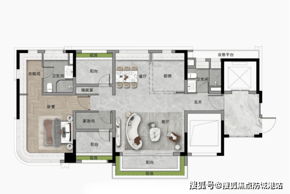 项目总建筑面积约4.5万㎡,容积率3.0,规划186户,主打108–140㎡三至四房全南向大平层,全部实现专梯入户,即便是最小面积户型也配备类候梯厅,归家仪式感拉满。