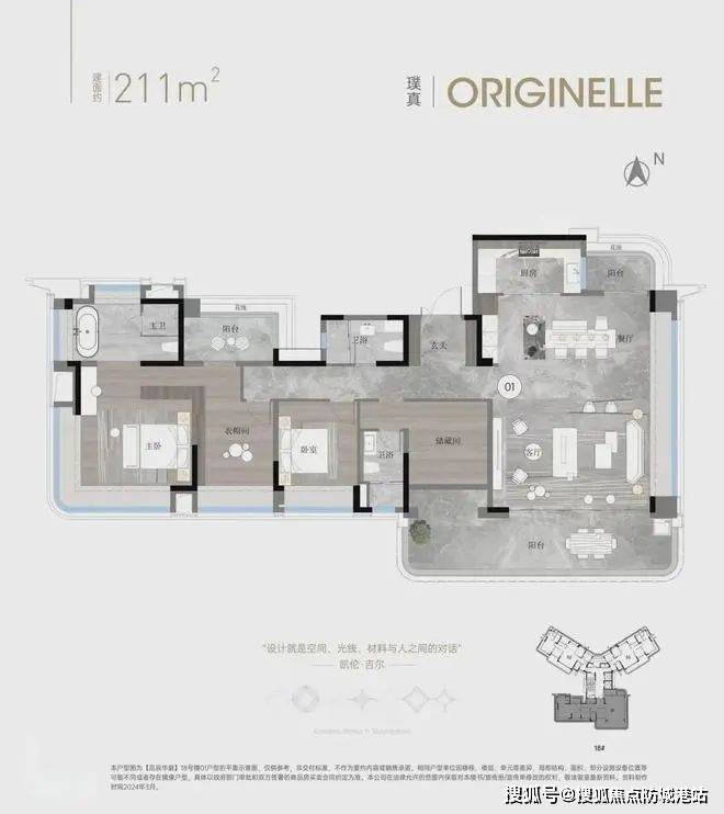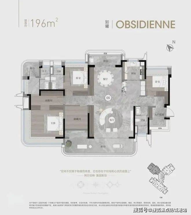 230平户型拥有私家电梯厅、双主套、独立佣人房、南北对流、LDKB大方厅、主卧L型270°飘窗等,大大提升了整体的空间体验。