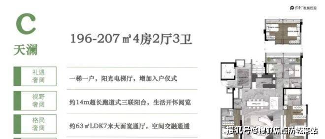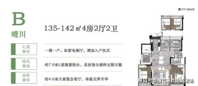 户型设计亮点多多。120 - 130㎡四房两厅两卫,约 7 米双联观景阳台,视野开阔,独梯独户,出梯直达私密前厅,LDK 客餐厨一体化,U 型厨房动线合理,户型方正布局好。135 - 142㎡四房两厅两卫,约 7.7m 阳台连通次卧能打造阳光花园,LDK 餐客厅一体化还有岛台,半开放式厨房实现交互式生活,户户朝南采光通风佳,还有 + 1 房灵动空间,使用率高达 110%。196 - 207㎡四房两厅三卫,独梯独户归家仪式感满满,约 14m 观景阳台奢享一线滨水景观,双主卧套房,大主套房超 30㎡还有超大衣帽间,7 米超大会客厅尽显尊贵。