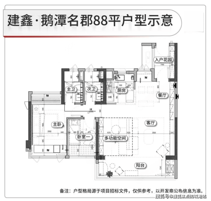 例如,88平方米户型配备6.2米阳台,部分空间通过入户花园和飘窗扩展,提升实际使用率;