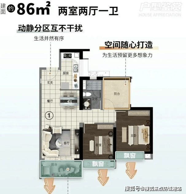 项目主力户型为建面约 85-143㎡三至五房,全部采用全南向设计,实测采光时长达 8 小时 / 天,通风效果良好;户型设计遵循 “高拓展、高实用” 原则,通过阳台、飘窗等拓展空间,实现空间利用率超 100%,远高于市场同类产品 85% 的平均水平。以建面约 108㎡四房户型为例,实测套内使用面积达 110㎡,拓展空间约 15㎡,可满足三代同堂的居住需求;建面约 85㎡三房户型,做到了三房两厅两卫的极致设计,主卧带独立卫浴和飘窗,次卧采光充足,成为刚需置业的爆款户型。