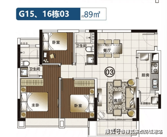 89㎡:3房2厅2卫,西南向