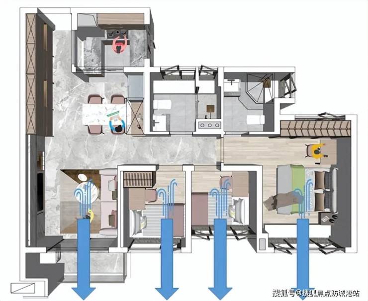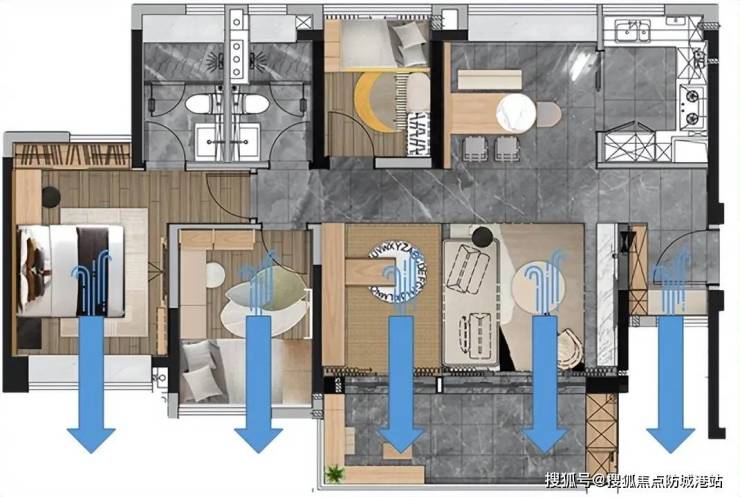86㎡ 2+1房:全开间南向,三卧室朝南,超11米景观线,储物空间相当于50辆宾利车尾箱。