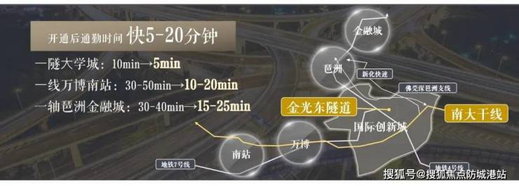 越秀·大学·星汇城距离地铁四号线新造站仅约700米,0换乘即可实现4站直达琶洲,5站到达金融城,轻松换乘5/7/8等多条重要地铁线路,10站以内通达所有CBD。项目门口直上南大干线,全程无红绿灯串联万博CBD和南站商务区,形成经济大动脉。金光东隧道距离项目仅900米,打通大学城一江两岸,真正实现5分钟大学城,15分钟琶洲,20分钟金融城,30分钟珠江新城。