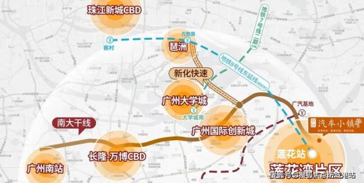 项目目前周边是没有地铁的,不过附近规划了地铁8号线东延段,线路开通后从莲花湾去万胜围预计25分钟左右,自驾的话,比较方便点,小区旁边就是南大干线,去往国际创新城、万博、广州南站都非常方便。