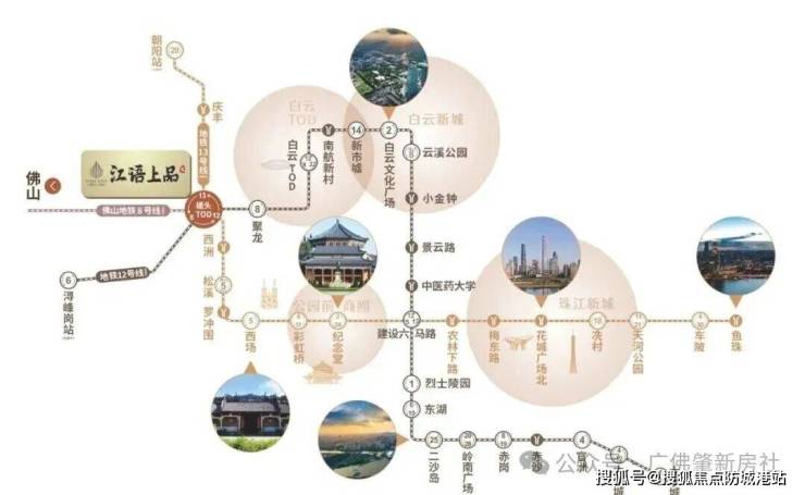 广州12号线、13号线、佛山8号线交汇,贯穿广州东西人文经济大动脉,广州五大区域核心版块无缝直达。