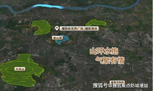 风水格局:背山面水,身后有大夫山和番禺市政府形成强大靠山,对面是珠江支流三支香水道,且被金山湖、大岗岭环抱,形成山环水抱、气聚有情的理想风水格局。