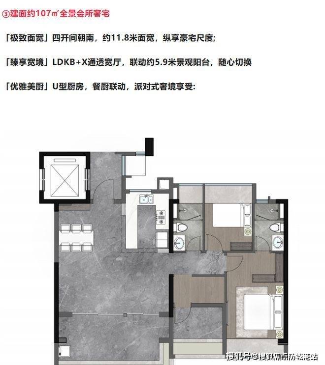 产品为 107 - 170㎡全景舱板奢大平层,新规户型使用率高达 115%,且为纯改善四房,全板式楼盘,确保 100%南北对流和 100% 四开间朝南。项目在规划设计上摒弃单纯追求收益的常规做法,而是专注于品质打造,最终呈现出纯南向板楼社区。约 55 米楼间距超越 50 米的标准,最大化每栋楼的视线和面宽,保障业主隐私,提供最佳视野景观。建面约 170㎡户型打造 “极境方厅”,LDKG 世界会客厅尽显层大人物生活主场;建面约 143㎡户型的 “奢阔通厅” 约 44㎡,同频层峯生活;建面约 107㎡户型以 “极致面宽” 四开间朝南,纵享豪宅尺度。