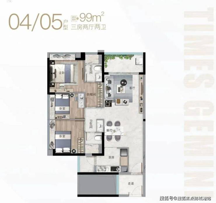 时代珑星共设有两栋楼,分别为G1栋和G2栋。G1栋采用蝶形设计,两梯六户,户型面积为99-106平方米的三房;G2栋则外观独特,推出的面积段为62-79平方米的精奢小户型住宅。尽管项目体量较小,没有大规模的小区园林绿化,但其靠近万博CBD的优势使其能够享受成熟的商圈配套。