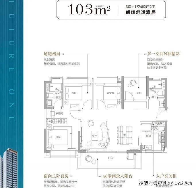 (3)主卧L型双面采光,270°江景视野