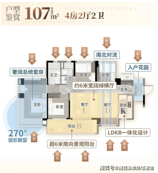 户型设计遵循新规标准,打造大面宽、长阳台、短进深的空间格局,最大化提升采光通风效果,让室内空间更显通透开阔。同时,通过阳台、飘窗、花池等赠送空间,实现户型使用率超100%,进一步提升空间利用率,让有限面积发挥更大价值。
