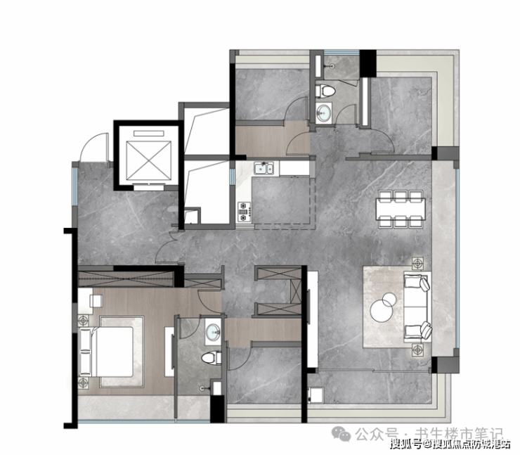 建面约 107㎡南向四房:刚需价格,改善尺度