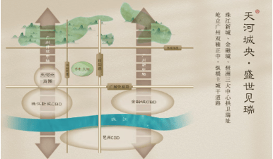 项目坐落于天河五山汇景新城板块,正好处在珠江新城和琶洲金融城这两大城市核心区的中间位置。旁边就是已经发展二十多年的汇景新城,那一带的圈层氛围和成熟配套,都给这个新项目提供了很好的基础条件。