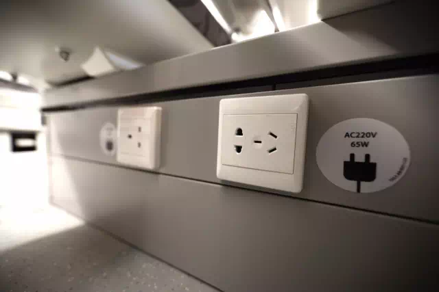这些基本设置和我们平常坐的和谐号没什么区别,但最赞的是,港高铁列车每个座位都有两脚和三脚电源插座。