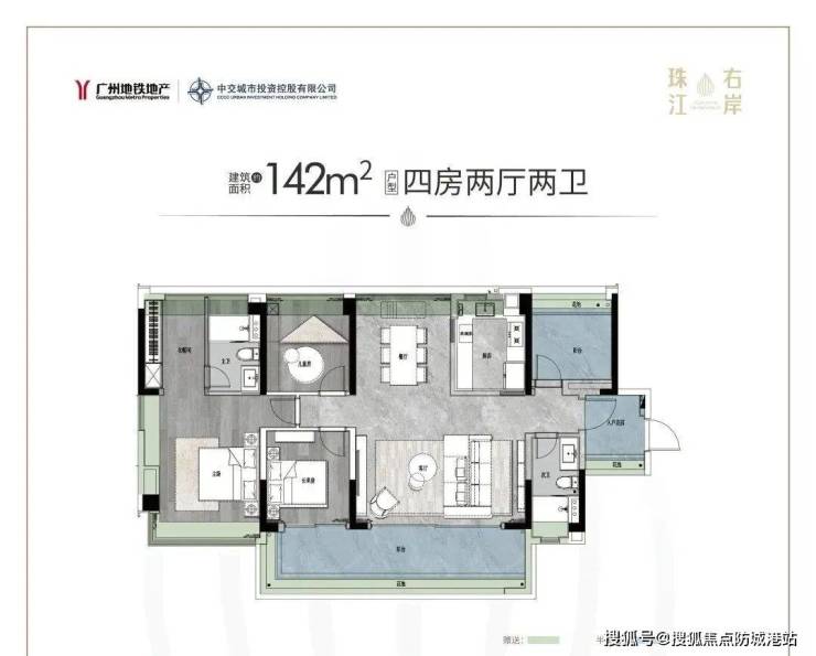 户型面积:建面约125-142㎡四房两厅两卫/214-319㎡大平层
