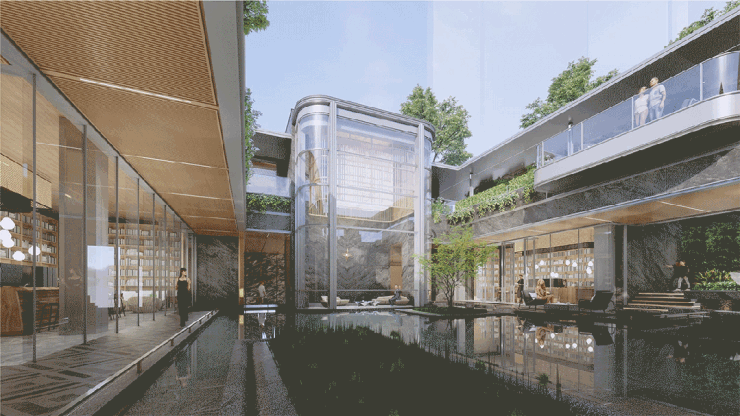 还有一座人文图书馆,打造区级人文地标,引入集“书、咖啡、餐酒、社交”于一体的复合空间。