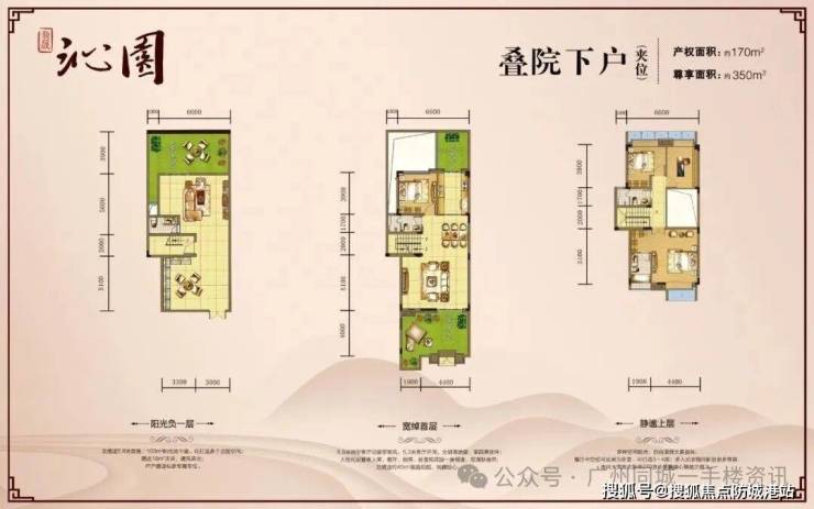 上叠院产品是项目的入门级院墅产品,主力产权面积为 170㎡与 223㎡,为想要入驻科学城核心区、体验院落生活的购房者,提供了低门槛的选择。其中 170㎡上叠院,实际使用面积可达 350㎡;223㎡上叠院,实际使用面积可达 325㎡,通过合理的空间设计,在有限的产权面积内,实现了功能齐全的居住空间,同时打造了顶层超大的多功能空中花园,为居住者带来了院墅产品的核心居住体验。
