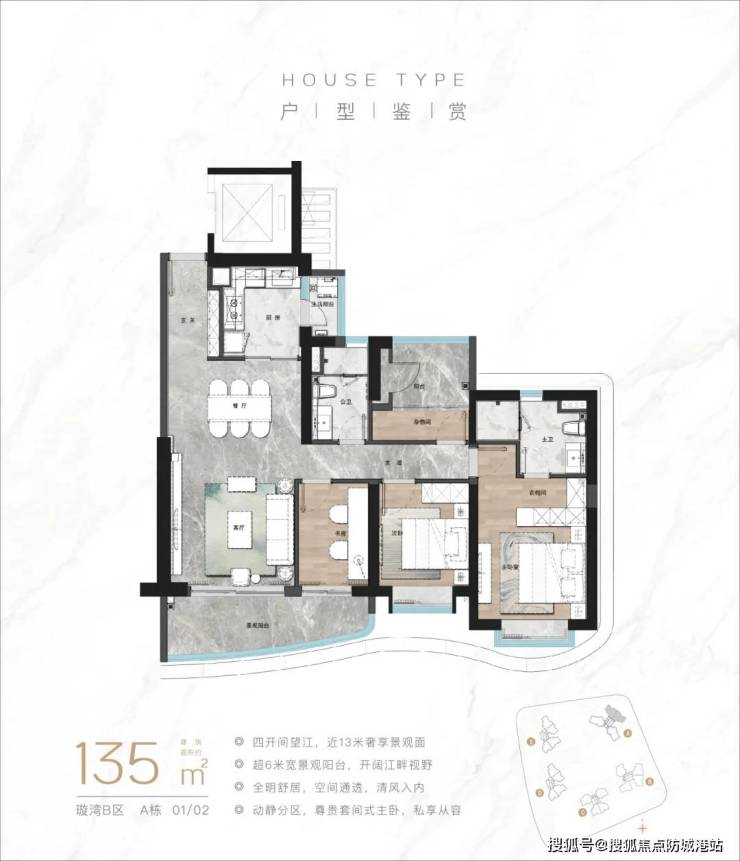 135-161㎡四至五房:一线江景户型,南北对流设计,空间宽敞,适合改善型家庭;
