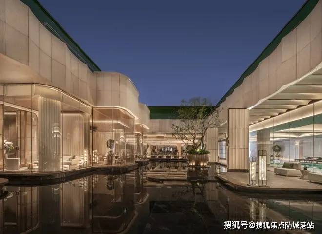 建筑立面与公区:采用大面积玻璃幕墙和铝板材料,打造奢润鎏金的外立面,搭配流体曲线外形与无柱转角弧形设计,不仅美观大气,更提升了采光与通透性;打造宽55米、高8.7米的奢阔门楼和9.5米双层挑高大堂,地库采用“星空顶”设计,每一处公区都尽显星级酒店般的尊崇感。