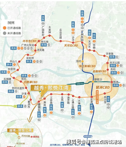 地理位置:越秀熙悦江湾坐落在海珠区西部,临近超级大盘星汇海珠湾,周边配套设施齐全。项目距离广佛线燕岗站约580米,距11号线棣园站也仅600米,步行至地铁站大约需要7-8分钟。