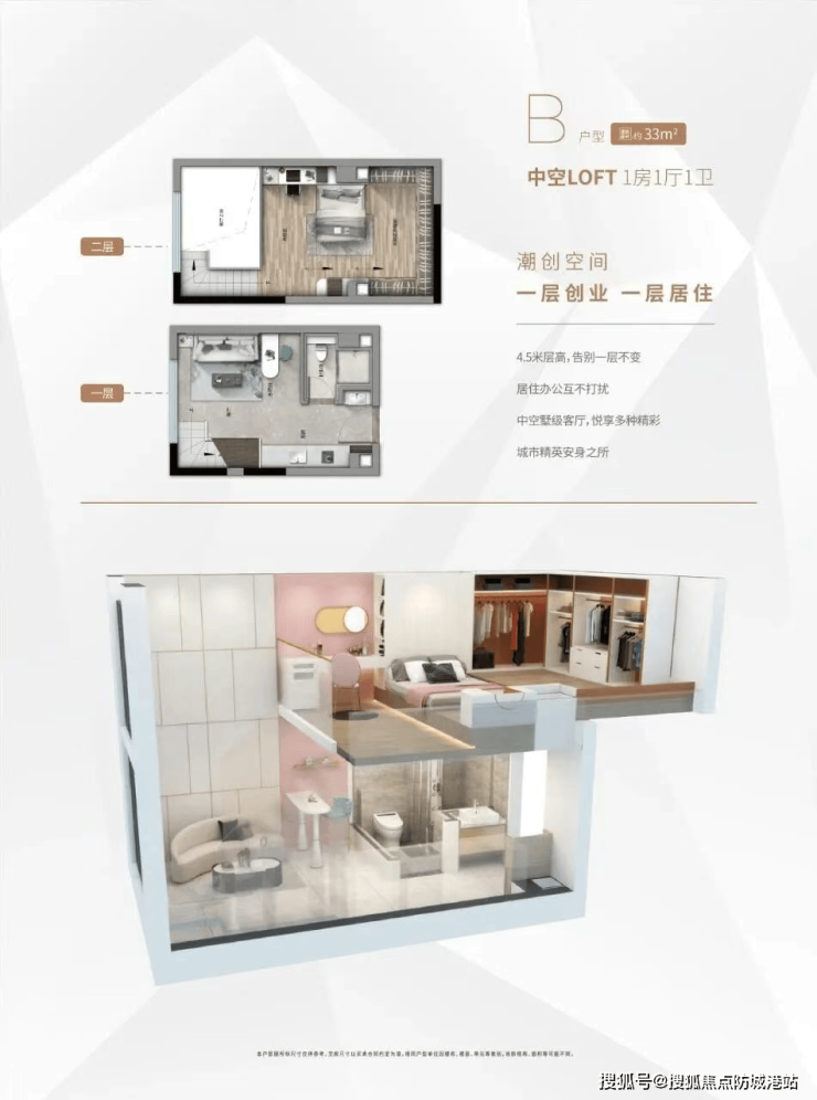 华新·333以空间魔法重新定义小面积价值,三大主力户型均采用4.5米超高挑空,实现“一层价格,两层使用”:
