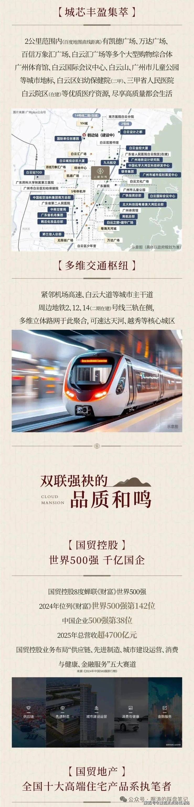 国贸·绿城|云樾和鸣由国贸地产与绿城中国双强联合开发,为项目的品质与交付筑牢了最坚实的根基。国贸地产作为世界500强国企国贸控股集团核心成员企业,深耕广州市场多年,尤其对白云区的人居需求有着深刻的理解与积淀,始终以国企责任坚守产品品质与交付底线。绿城中国作为国内高端人居领域的标杆企业,以极致的产品力享誉行业,连续多年入选全国稳交付房企白名单,入穗多年打造了多个经典人居作品,交付满意度始终位居行业前列。两大品牌强强联手,以国企的稳健与绿城的产品力,双重保障项目的开发建设与高品质交付,让每一位购房者都能买得放心、住得安心。若想了解国贸·绿城|云樾和鸣楼盘具体情况,欢迎随时致电400-0780-012,获取专属资料。