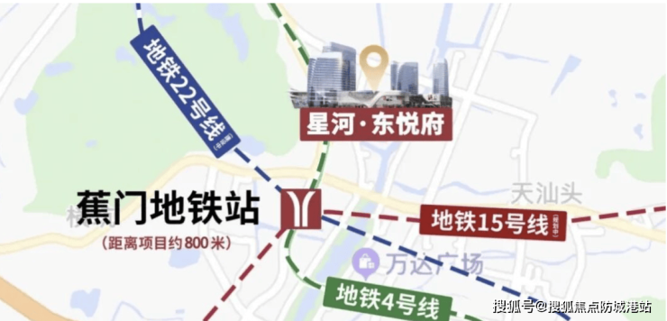 答:步行600米即达蕉门地铁站,未来三条地铁线路交汇,同时邻近高架及湾区干道,形成高效通勤网络