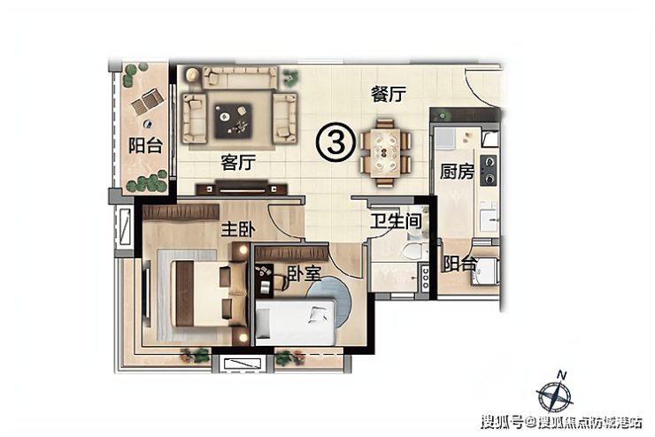 ③71㎡:2室2两厅1厨1卫
