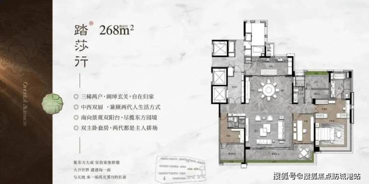 户型:107㎡(三房两厅两卫)、143㎡(四房两厅三卫)、188㎡(五房两厅四卫)、260㎡(五房两厅五卫),全系南北通透,主卧配备独立衣帽间与卫浴;