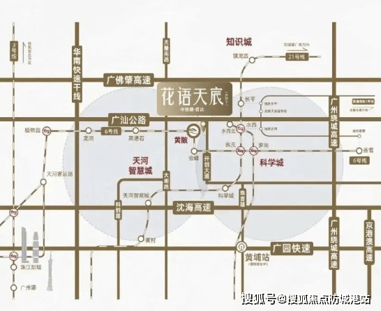A: 根据官方数据,项目位于广州市黄埔区黄陂板块,天河智慧城与科学城交汇处。距离地铁6号线黄陂站约2.5公里,门口有公交站接驳,骑行约8分钟可达。自驾经广汕公路、开创大道,30分钟内可达天河智慧城核心区。