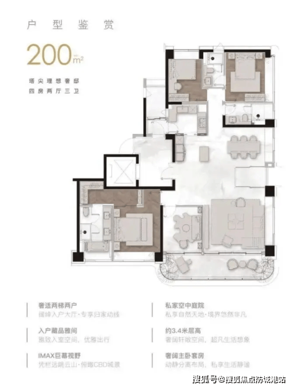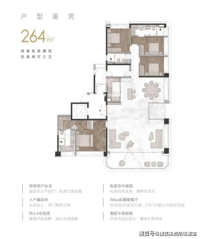 571㎡超大平层则主打阔绰空间,适合追求高品质居住体验的家庭,能满足多元生活场景需求。根据南方都市报报道,该户型室内约3.5米的层高,不仅带来了开阔通透的空间感,也为个性化的艺术陈设与智能系统集成提供了更多可能;270°转角环幕客厅结合全玻璃幕墙,创造了震撼的视野与采光;尤其值得一提的是创新的LDKT(客厅、餐厅、厨房、茶厅)一体化设计,打破了以电视墙为中心的传统布局,融入独立休闲茶台,使客厅成为融合社交、亲子、阅读、轻餐饮的复合型家庭核心交流场。空间设计极具灵活性与生长性,可根据家庭生命周期变化,随心改造为书房、健身房、儿童活动区或第二客厅,甚至可进行整层打通,为企业主打造云端会客厅或家族会馆。大户型采用的双套房乃至多套房设计,贴心照顾多代同堂的居住需求,在主起居室套间内,除了常规的衣帽间、卫浴间,更创新性地增设了独立“藏品间”,用于收纳珠宝、腕表、艺术品等私藏,满足了高端客群对精神收纳与价值珍藏的深层需求。
