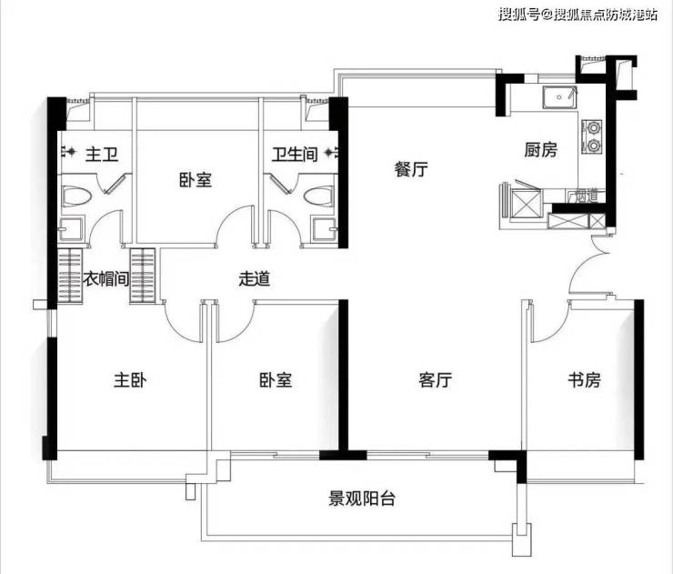 主套有做衣帽间设计,加分,卫生间也是干湿分离的设计,门口的书房也能用作老人房用途。