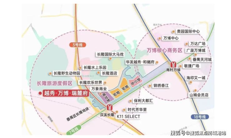 文旅商业: 紧邻长隆旅游度假区,拥有长隆欢乐世界、长隆水上乐园、长隆飞鸟乐园等世界级文旅项目,周末亲子游、度假游的首选之地。