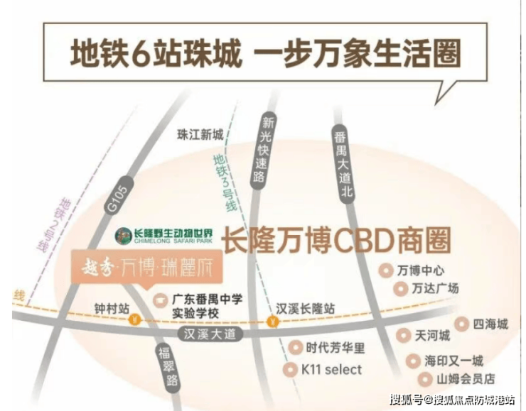 项目前身可追溯至 1999 年,当时长隆集团便在此拿地,历经二十余年的土地培育与规划酝酿,直至与越秀地产合作后正式焕新入市。这一漫长的周期不仅见证了万博板块的崛起,也赋予了项目深厚的土地底蕴和不可复制的稀缺性。