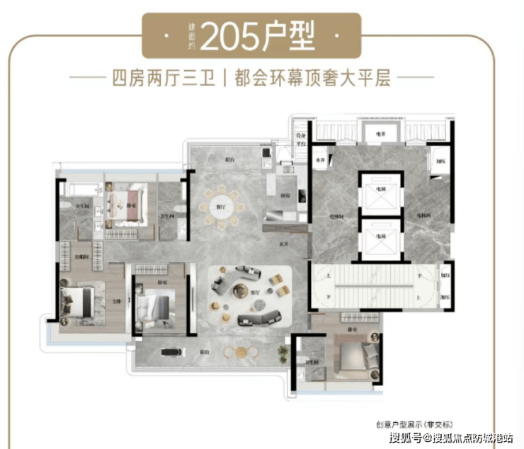 三、建面约 205㎡奢适四房(楼王户型)