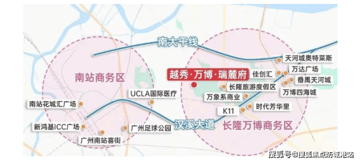 首先,区域能级的跃升是支撑项目价值的基石。2025 年至 2026 年间,万博商圈完成了史无前例的扩容升级,面积从原有的 1.5 平方公里扩大至 7.2 平方公里,规模赶超珠江新城,正式确立为广州新的“宇宙中心”。这一扩容不仅是地理范围的延伸,更是产业能级、商业体量和人口密度的全面爆发。长隆万博 CBD 成功合体,形成了“北天河、南番禺”的双核驱动格局。作为广州南部唯一的超大型 CBD,这里汇聚了全球 500 强企业总部、国际顶尖商业综合体以及世界级的文旅资源。越秀·万博瑞麓府身处这一核心辐射圈,距离万博 CBD 仅约 5 公里,开车 10 分钟即达,却又能享受远离喧嚣的静谧,这种“离尘不离城”的区位优势,在寸土寸金的广州堪称绝版。