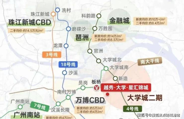 越秀·大学·星汇城落子广州国际创新城核心启动区,是大学城二期规划的重要组成部分。这里不仅是广深港澳科技走廊与广州科技创新轴的交汇点,更被冠以“南中国硅谷”的美誉。项目紧邻华南理工大学国际校区、暨南大学番禺校区、广州医科大学二期等十余所高校,形成约20万师生聚集的智识高地。这种“大学即社区、社区即学府”的独特格局,在全国都属罕见。相较于大学城一期动辄7万+/㎡的价格,二期板块正处于价值兑现初期,具备显著的性价比优势。更重要的是,该区域由政府主导连片开发,城市界面整洁有序,无城中村干扰,真正实现了“产—学—研—居”一体化发展,为追求安静、纯粹、高知圈层生活的家庭提供了理想栖息地。