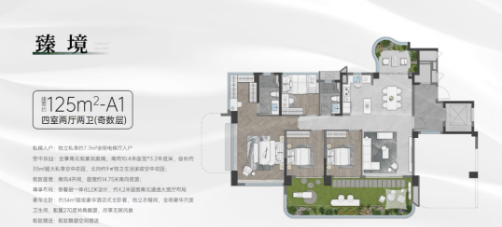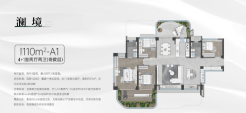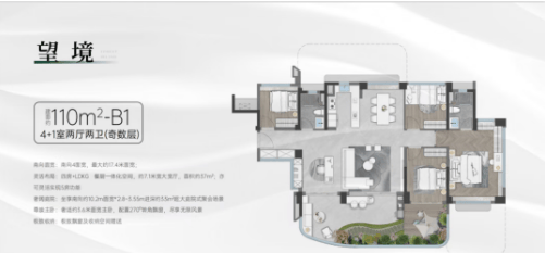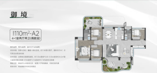 110㎡户型:享受170平方米的空间感,赠送面积高达40%,阳台率从20%提升至25%,实用率接近150%。